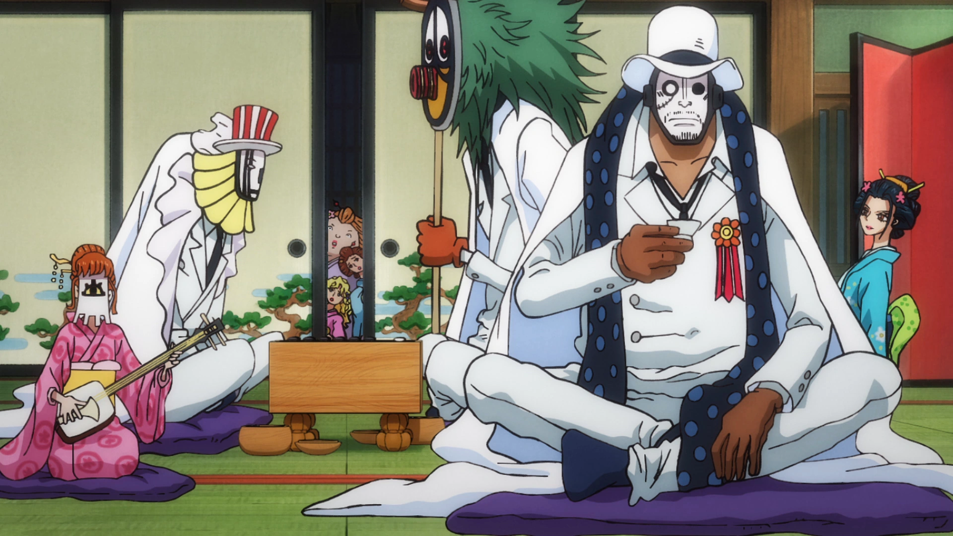 - ↑ 4,0 4,1 4,2 One Piece Mangá e Anime — Vol. 92 Capítulo 929 (p. 11-12) e Episódio 922, CP0 negocia com Orochi.