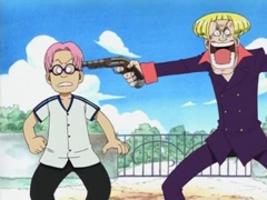 Na versão da série da 4Kids, quando Helmeppo aponta uma arma para a cabeça de Koby, a arma foi transformada em um estranho dispositivo parecido com um martelo com uma mola (uma xolofompila). No entanto, o martelo foi praticamente editado e pode ser visto como uma arma durante uma fração de segundo.