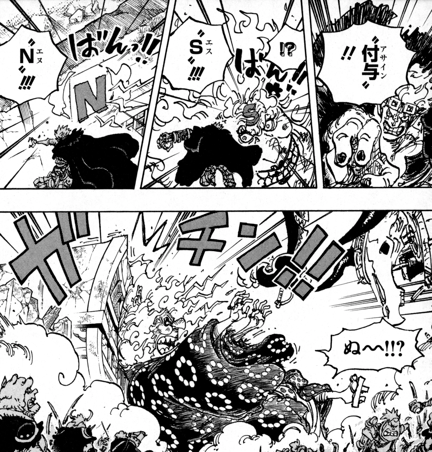 ↑One Piece Mangá e Anime — Vol. 97Capítulo 975 (p. 8-9) e Episódio 978.