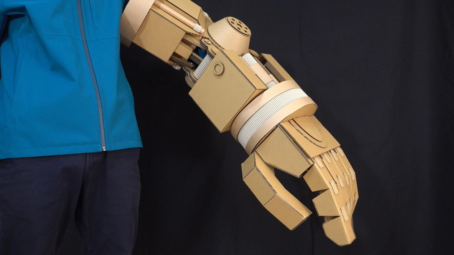 Réplica de papelão do braço prostético esquerdo de Kid, feita por Crafty Transformer.