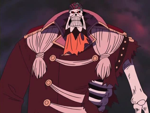 Após este tempo, os piratas do chapéu de palha apareceram e inconscientemente, matou todos os monstros segurando os outros ossos de Joke quando estava indo para o tesouro. Os ossos foram devolvidos em seguida ao seu corpo com sua derrota, permitindo-lhe ser revivido e continuar a procurar o tesouro. Ele foi parado por Hamu, filho de um chefe mais velho que matou Joke. Os Piratas do Chapéu de Palha (Luffy, Nami e Usopp) o segurou para impedi-lo de acertar um tiro em Hamu com sua pistola Multi barril, permitindo Hamu dar o golpe final.