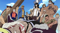 - ↑ One Piece Mangá e Anime — Vol. 34 Capítulo 323 e Episódio 230.