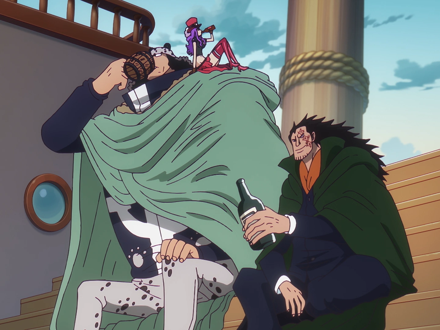 À medida que a notícia das façanhas dos Chapéus de Palha em Dressrosa se espalhava pelo mundo, Dragon, Sabo e Koala leram sobre as novas recompensas dos piratas.[56]