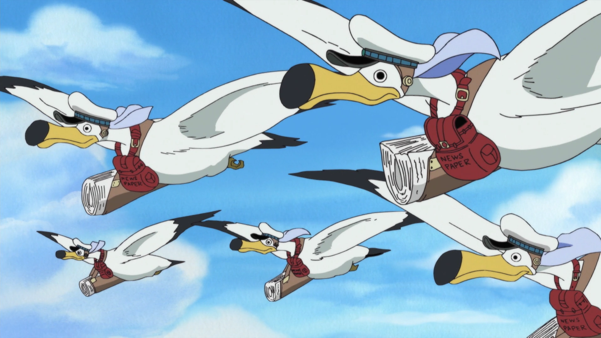 - ↑ One Piece Mangá e Anime — Vol. 82 Capítulo 825 (p. 2) e Episódio 783, Vito menciona que quadrinho Sora é publicado no Jornal Econômico Mundial.
