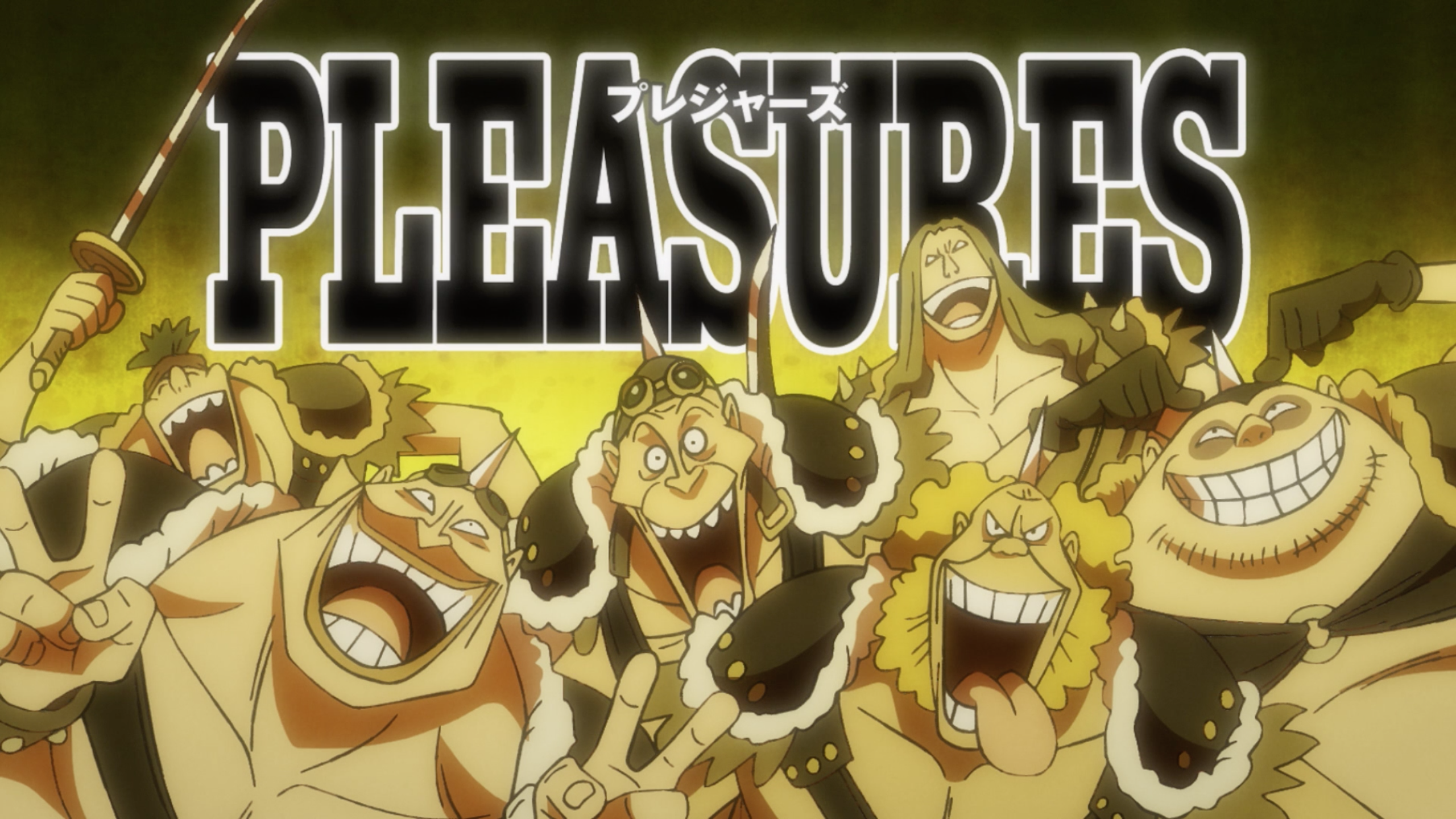 Os Pleasures (プレジャーズ, Purejāzu?)[100] são os soldados de infantaria de nível médio da tripulação, apenas acima dos Waiters. Eles são os muitos infelizes que não conseguiram obter qualquer característica animal após comer uma fruta SMILE, estando nos 90% que comeram frutas insatisfatórias (e como para cada Gifter há nove Pleasures, pode-se inferir que o número de Pleasures está em torno de 4.500, embora qualquer número específico não tenha sido mencionado ainda).[101]