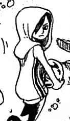 Quando criança, ela usava um vestido de cor clara com capuz e uma listra na lateral. Porém, o anime mostrou que seu vestido é da mesma cor de sua roupa atual.