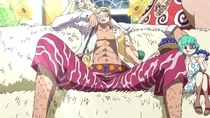 - ↑ 2,0 2,1 One Piece Mangá e Anime — Vol. 73 Capítulo 731 e Episódio 663.
