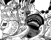- Surume (como animal de estimação de Luffy) vs Wadatsumi (Gyoncorde Plaza).