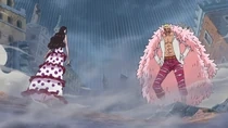 Antes da intervenção de Kyros, Doflamingo planejava executar Riku Dold III. A fim de salvar a vida de seu pai, Viola se juntou às fileiras dos Piratas Donquixote e parecia ter conquistado a confiança de Doflamingo o suficiente para que ele a chamasse por seu nome verdadeiro. No entanto, a própria Viola odeia Doflamingo pelo que ele fez com sua família e país e desejava matá-lo. Ele não ficou especialmente surpreso ao saber que ela o havia traído. Quando ela o confrontou, ele a feriu gravemente e deixou claro que poderia perdoar as falhas de seus subordinados, mas não toleraria a traição dela. Ele até manipulou a sobrinha de Viola, Rebecca, para matá-la e se alegrou com sua tristeza e falta de vontade, mas eles foram salvos pelos esforços combinados de Luffy e Law. Viola mais tarde assistiu à derrota de Doflamingo com lágrimas de alegria.