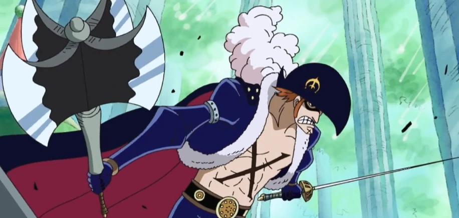 Quando ele era um membro dos Piratas Barrels treze anos atrás, dizia-se que ele era o membro mais forte da tripulação.[29]