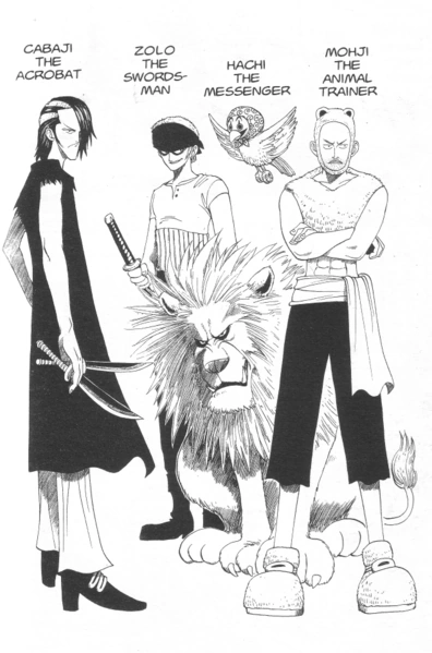 Изначально, Ода планировал сделать странного Мечника и укротителя зверей членами команды. Когда были сделаны их первые зарисовки, ни у кого из них ещё не было имени. В одной из версий был ещё один безымянный персонаж, а Багги могли бы звать Бугги.
