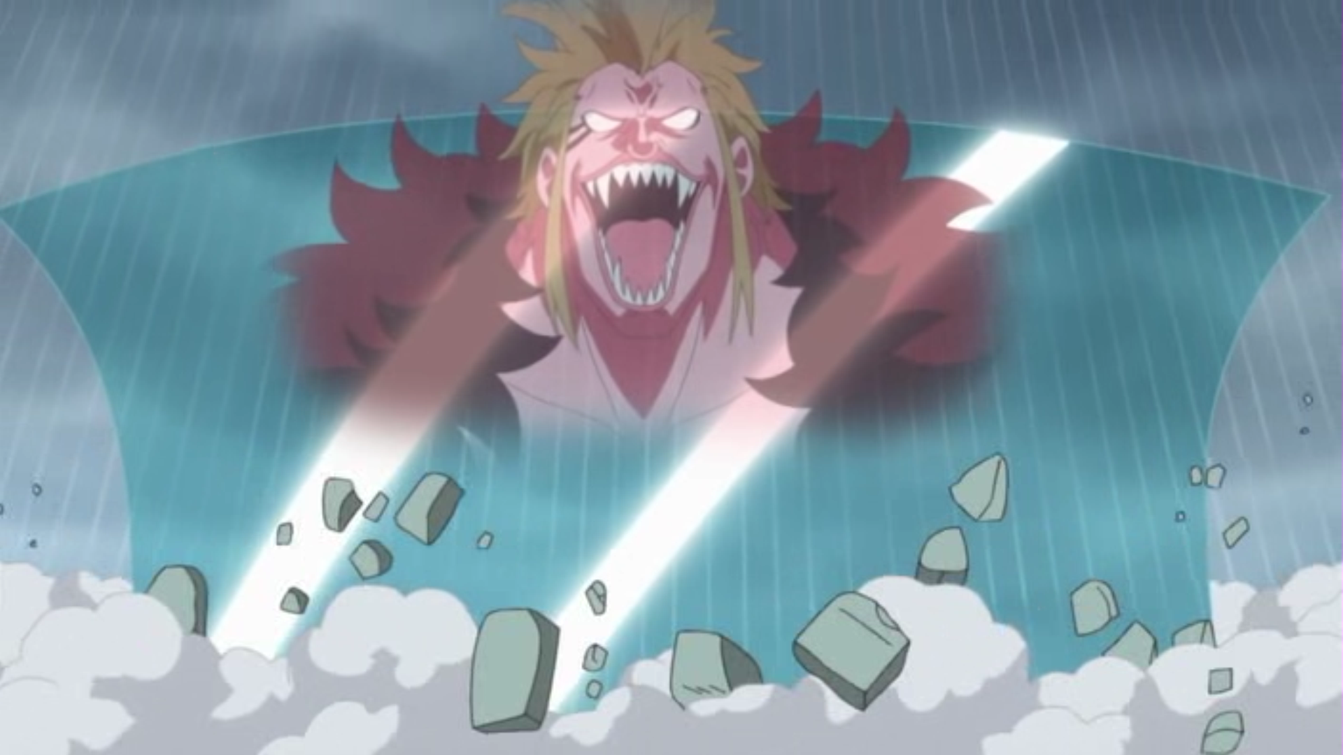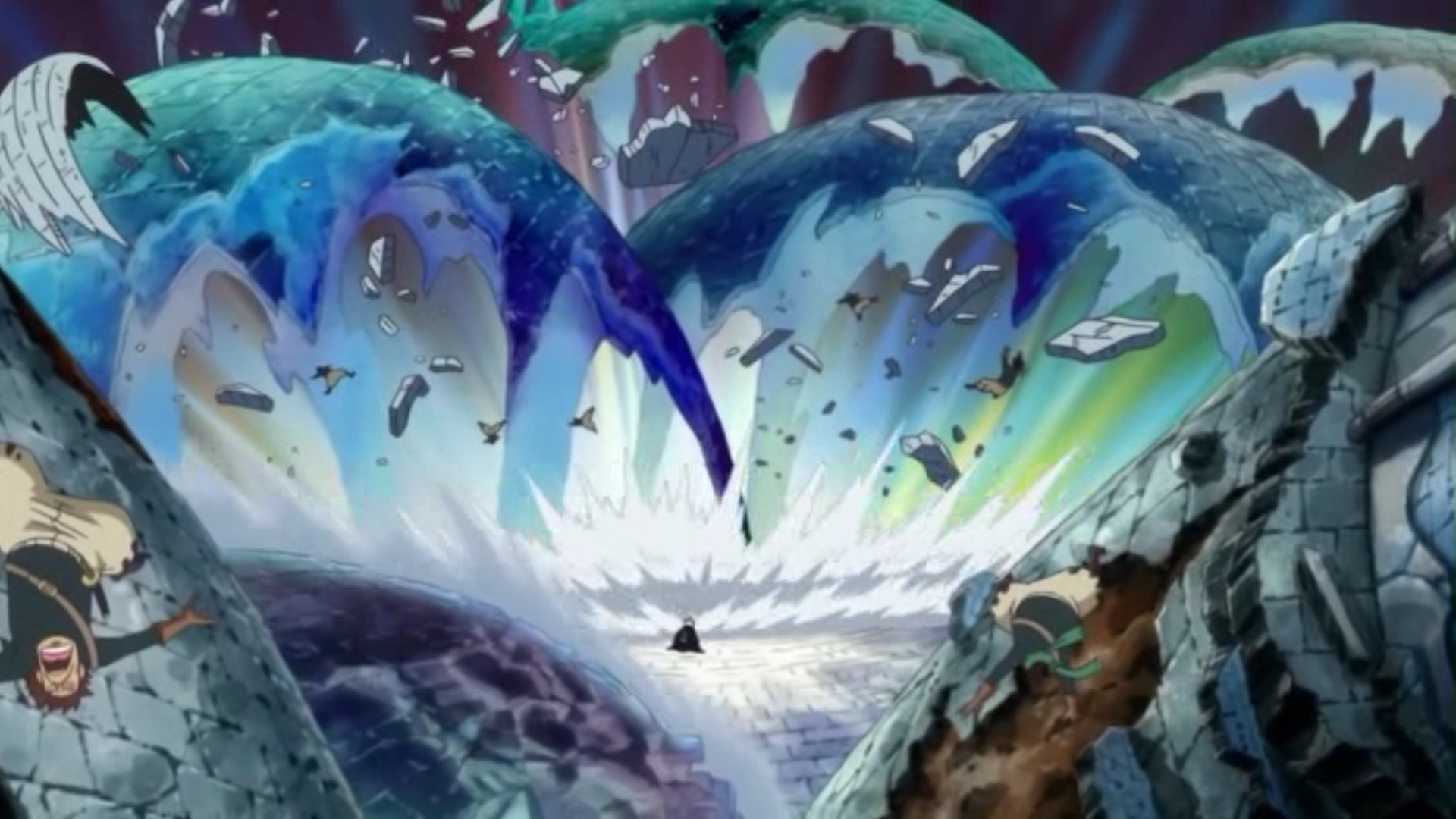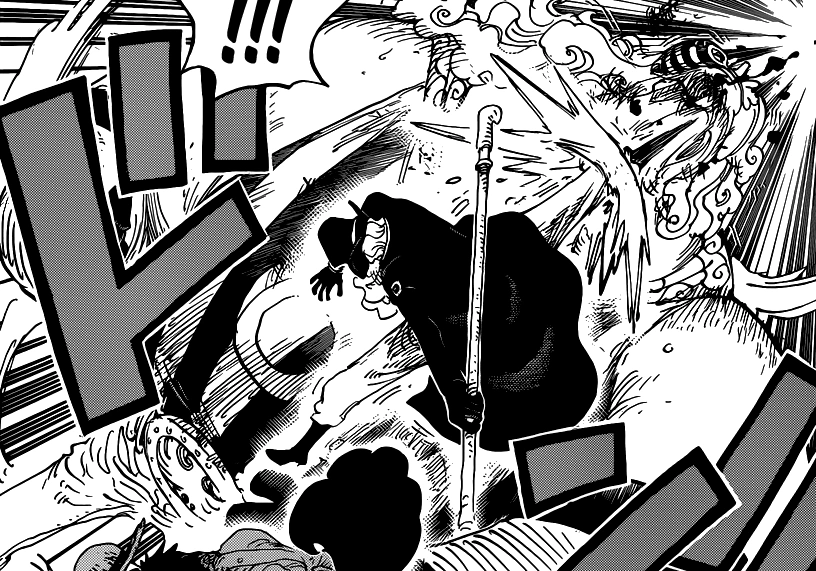 Однако слепец сказал Луффи сделать шаг назад, после чего обнажил свой меч. Внезапно дилеров начинает сильно придавливать к земле, вместе с ними начинает обрушиваться пол, создавая гигантскую дыру куда в дальнейшем все они упали. Луффи и его группа были восхищены силой этого человека, слепец отмечает, что быть слепым не так уж плохо, так как можно не видеть "грязи" окружающего мира.[2]