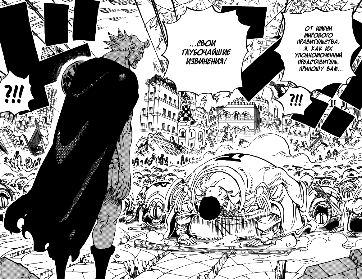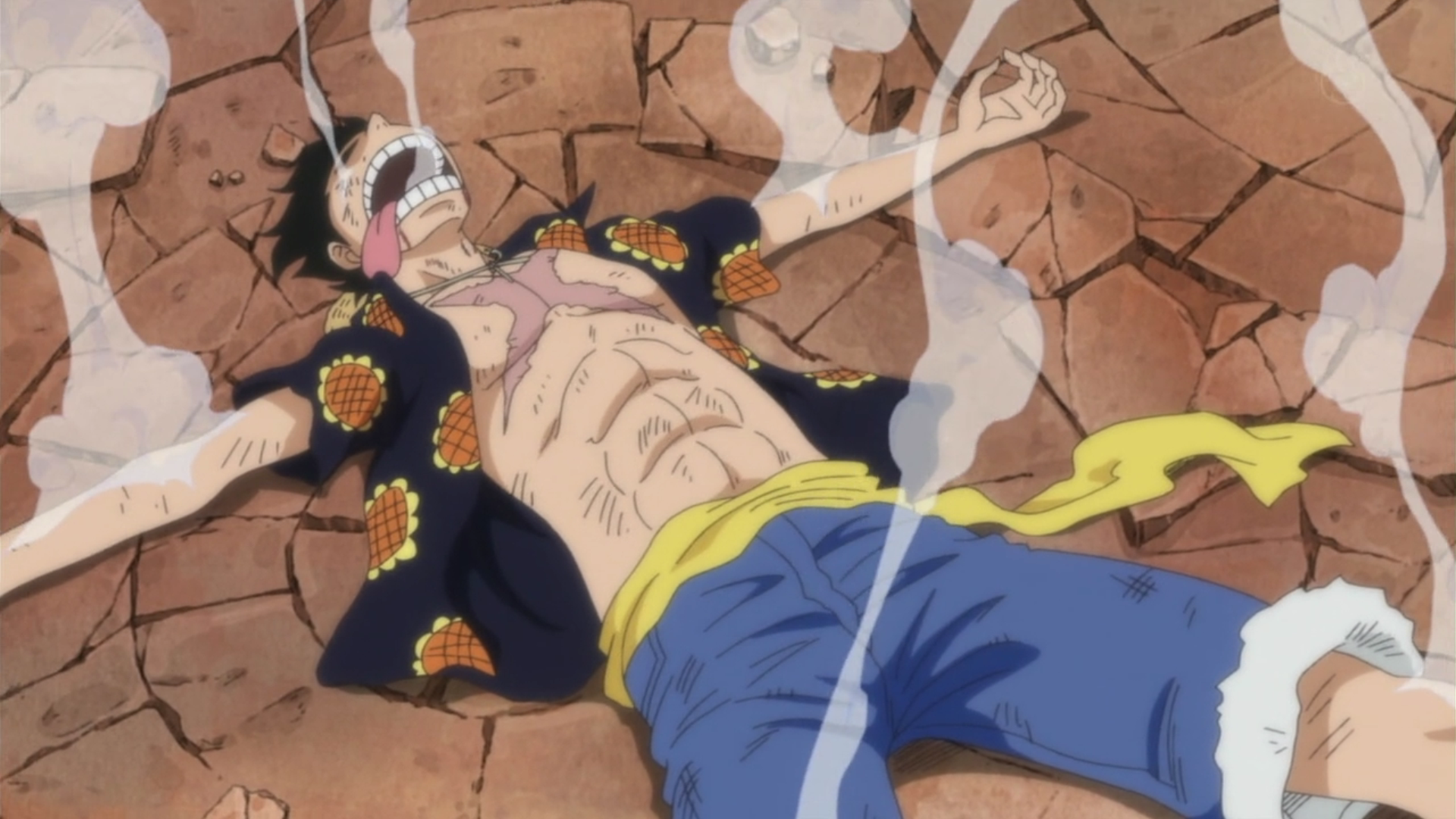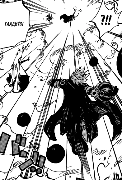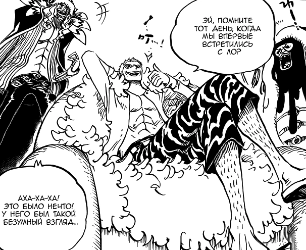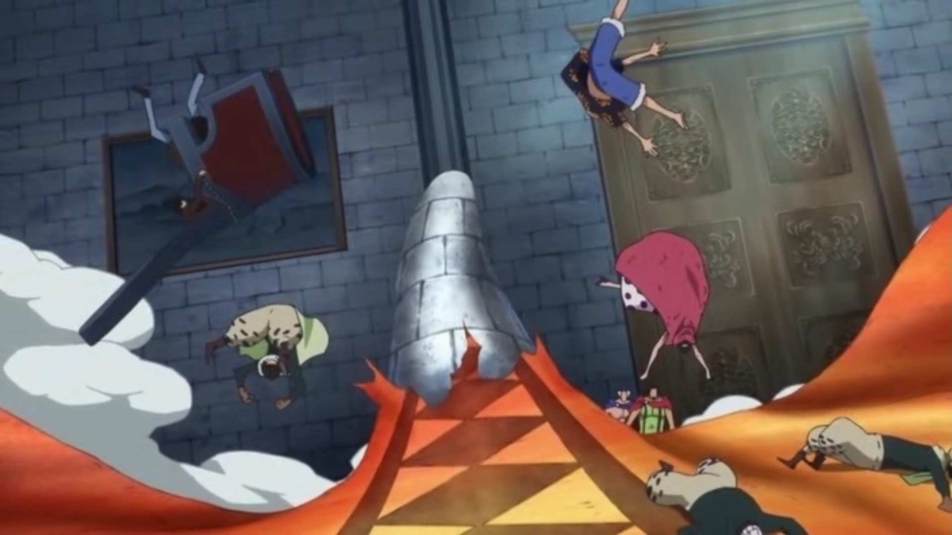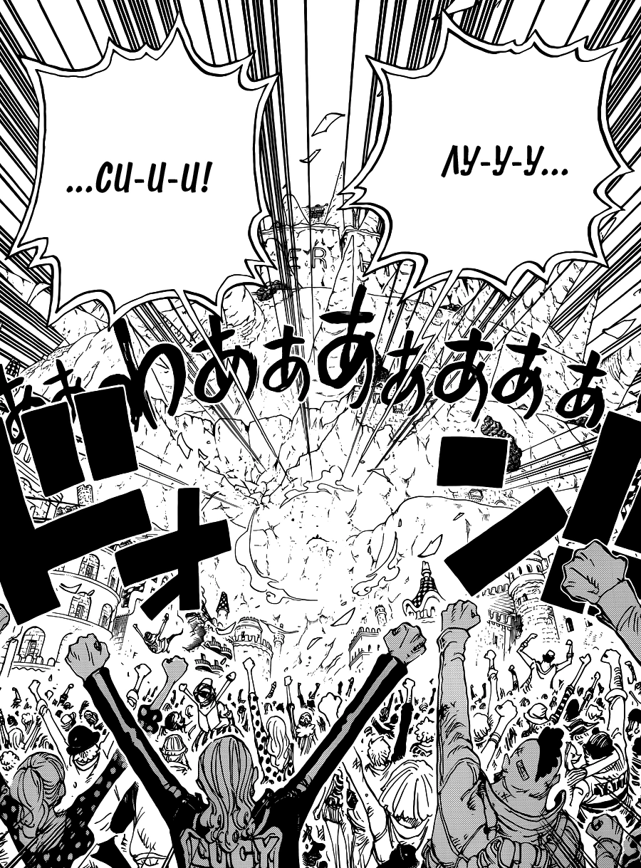 После окончания речи Дофламинго, Луффи связывается с Робин и Ребеккой, которой обещает победить Дофламинго. Тогда, не смотря на несогласие Трафальгара Ло, Мугивара Луффи хватает его и Зоро, после чего спрыгивает с Королевского Плато, приказывая Дофламинго ждать его.[25]