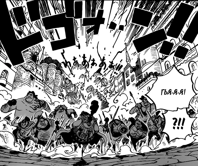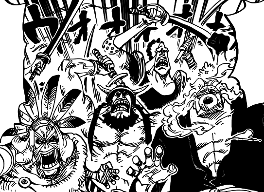 Затем Санджи спрашивает Ло о том, не было бы лучше для них, если бы они ограничили количество присутствующих человек во время обмена, но Ло опровергает это, заявляя, что их реальная цель состояла в том, чтобы найти скрытую фабрику SMILE и уничтожить её. Луффи начинает приходить в восторг в предвкушении нового приключения, а затем он решает, что следующий остров в который он планирует отправится Страна Вано. Однако на данный момент, они решили позавтракать. Во время завтрака Кин’эмон кратко объясняет события, приведшие его и Момоносукэ в конечном итоге на Панк Хазард.[1]