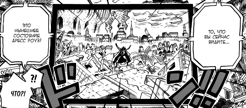 Закончив сражение, Дофламинго обращается к Королю Рику, спрашивая его о том, не забыл ли тот события Трагедии Дресс Розы, после чего заявляет, что то событие по сравнению с тем, что сейчас начнётся, будет казаться детской шалостью. Таким образом, не желая тратить на них своё время, он приказывает Пике вышвырнуть нарушителей из дворца.[24]