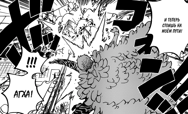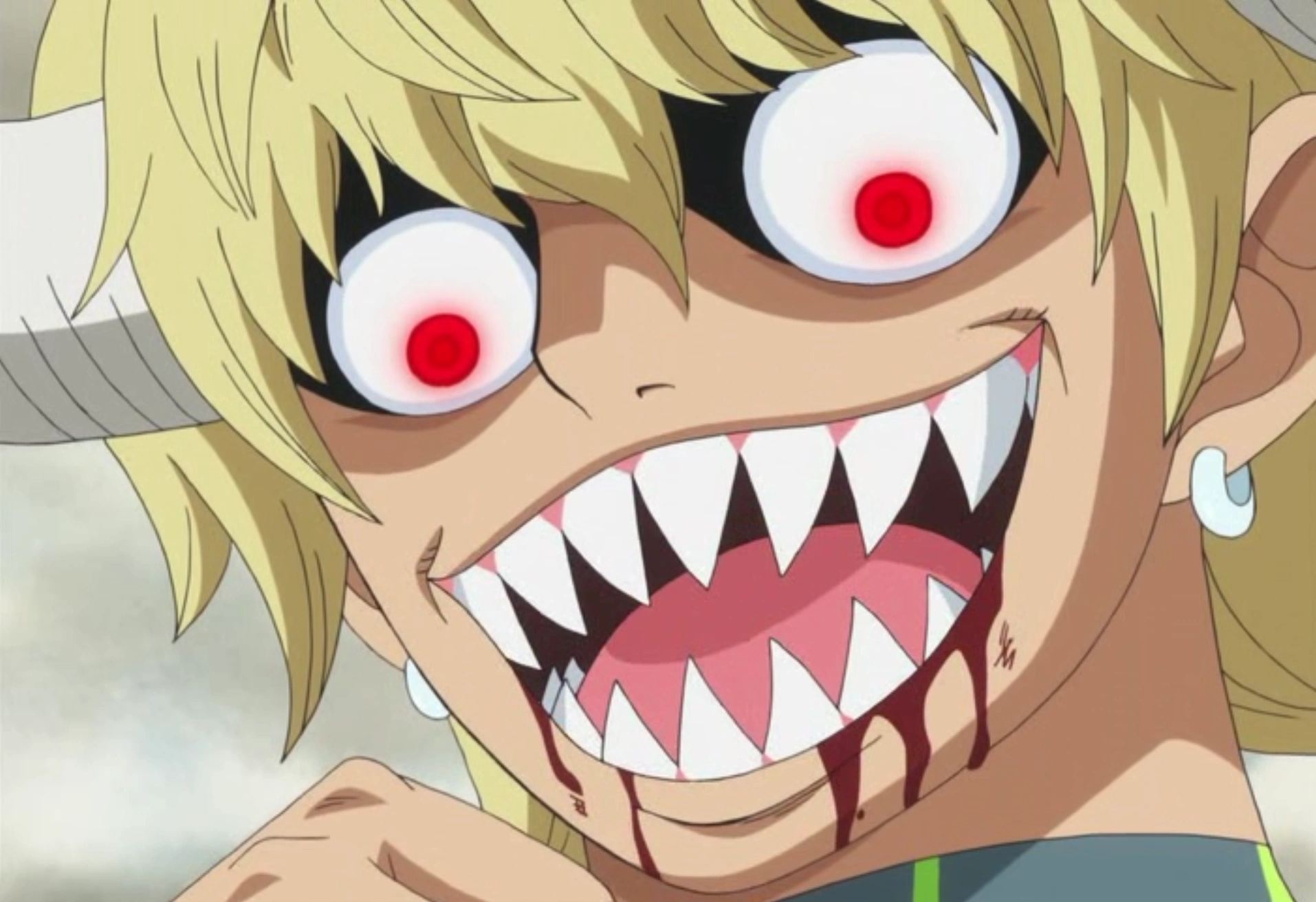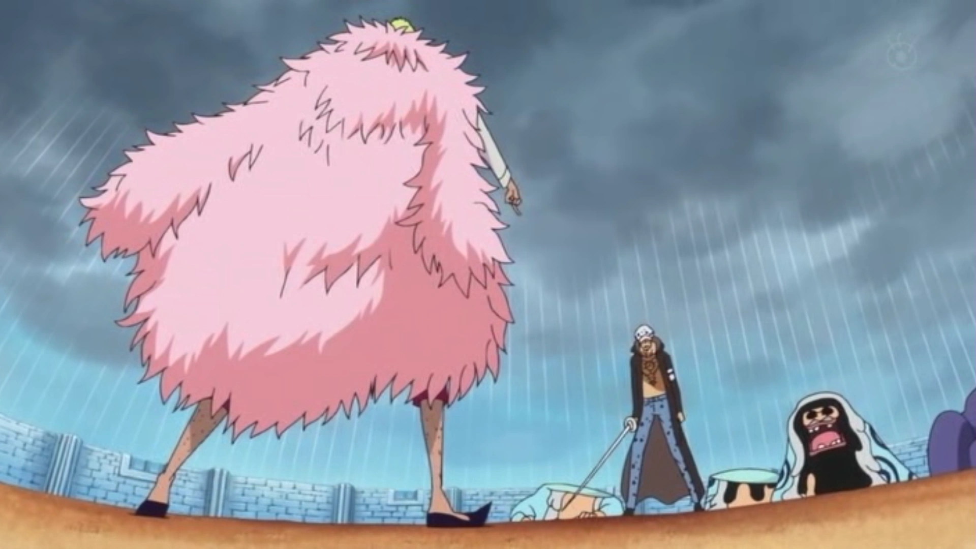 Уточняя, что главные нарушители каждой организации получили по 3 звезды. Закончив с этим, Дофламинго объявляет, что и это ещё не всё, так как тот кто сегодня разозлил его больше всего, тот корень всего зла по чьей вине они были вынуждены участвовать в этой жестокой игре и тот, за чью голову была назначена награда в