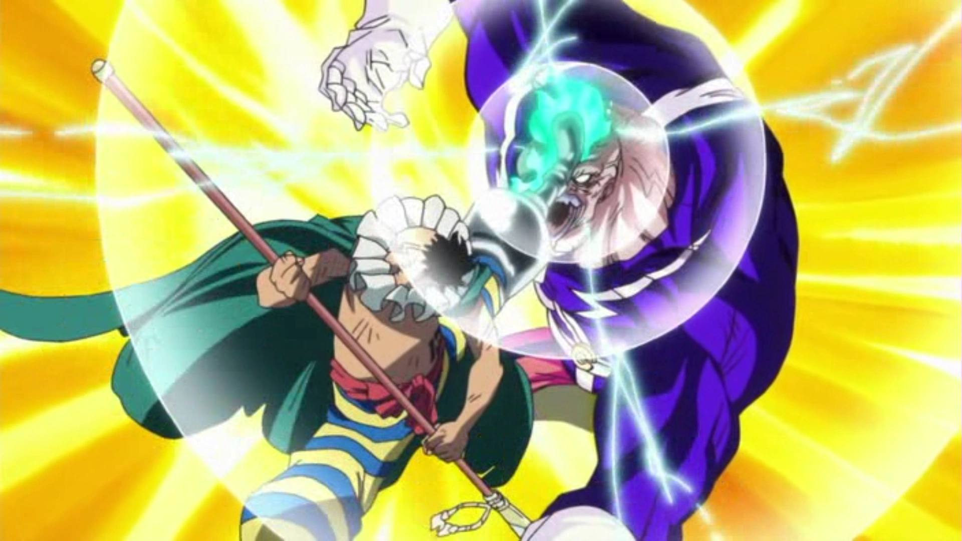 По пути туда, Гантё благодарит их за их помощь и поскольку они оба готовы поставить на кон свои жизни, он решает посвятить их в сложившуюся ситуацию, заявив, что конфликт между народом Тонтатта и Семьёй Донкихот длится не каких-то 10 лет, а гораздо дольше, уходя корнями на 900 лет в прошлое.[20]