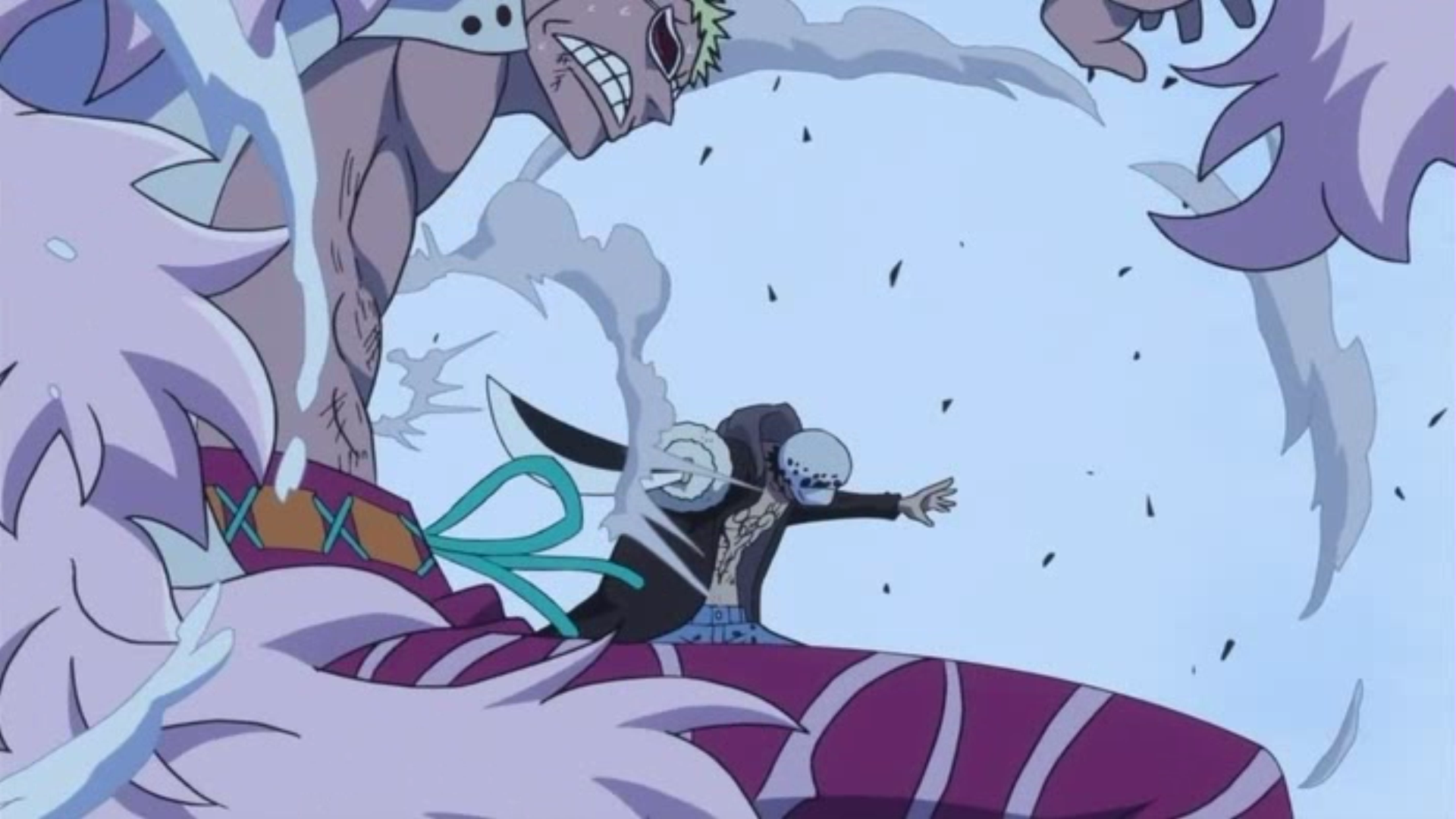 Когда Ло услышал, что самураи направлялись в Дзо, он заявляет, что он также планировал отправиться туда после разрушения фабрики, чтобы воссоединиться со своей командой. Когда Кин’эмон закончил рассказывать свою историю, Фрэнки, Чоппер и Луффи, увлекшись, заявили, что они помогут ему спасти друга самурая, Кандзюро, к большому раздражению Ло. В новой Штаб-Квартире Морского Дозора, Коммодор Браннью, разбирал ситуацию об отречении Дофламинго от статуса Ситибукай и нового альянса Ло, в то же время был, упомянут новый Ситибукаи, "Звёздный Клоун" Багги. В ответ на это, Адмирал Флота Сакадзуки утверждал, что он послал Фудзитору на Дресс Розу для проведения расследования.[1]