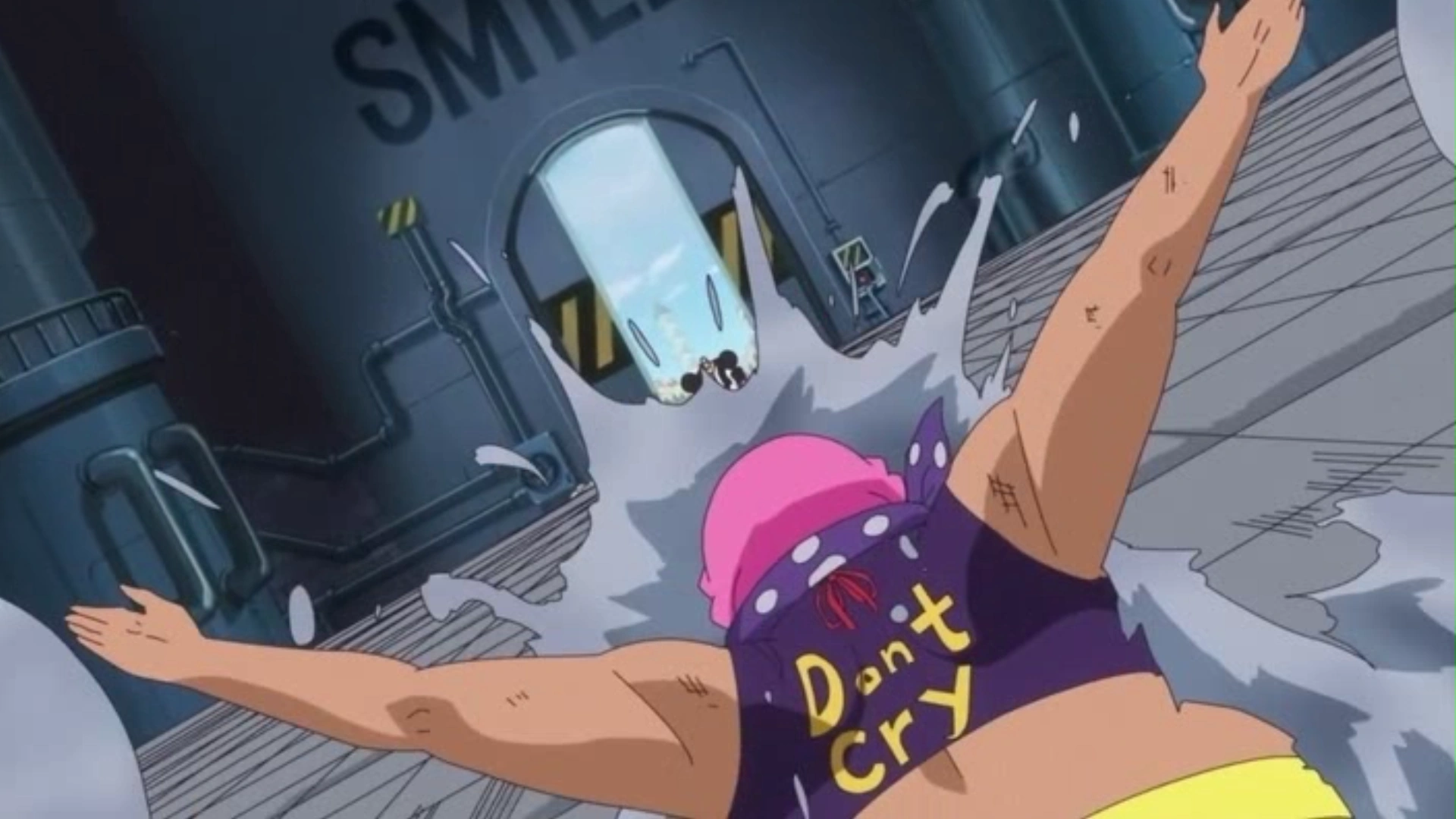 В то время, как Бёрджесс приветствовал толпу, Фрэнки стало интересно, будет ли так просто Луффи получить плод своего брата. В итоге Фрэнки решает уйти и выполнить его работу по разрушению Фабрики SMILE, но его останавливает Солдатик, который советует ему обсудить их разговор в другом месте, так как обсуждать такие вещи среди зрителей не безопасно.[9]