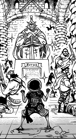 В то же время, в Королевском Дворце, Баффало, испытывая сильный гнев из-за убийства "Молодого Господина", нападает на Кироса. Однако прежде чем тот успевает его достигнуть, Кирос сворачивает ему шею и выбрасывает за пределы Королевского Дворца. Увидев это, Бейби 5 также, вступает в бой с гладиатором, но терпит поражение.[23]