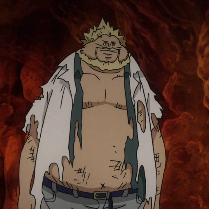 Взрослый динозавр несёт Луффи в своей пасти, чтобы накормить своих детёнышей, среди которых прячется Аси, но Луффи удаётся выбраться и не быть съеденным. Аси сильно удивляется, когда впервые за двести лет видит другого человека. Он освобождает Луффи от цепей, благодарит за компанию и рассказывает, что попал в желудок Бонбори двести лет назад и с тех пор питался одним мясом. Луффи удивляется, как можно на это жаловаться и рассказывает про девочку, Ольгу, которая питалась тут одной рыбой и плодами. Когда Аси понимает, что его дочь всё ещё жива, он не может в это поверить и плачет от счастья. Также он узнаёт от капитана Соломенных Шляп, что она находится в плену у Мэда Трэза, поэтому Аси присоединяется к Луффи, чтобы спасти её из рук безумного искателя сокровищ. Вместе они добираются до пляжа, где Аси предлагает построить лодку, которая не разрушится под действием желудочного сока Бонбори, после чего собирается отправиться на поиски материалов, но Луффи замечает водную ящерицу и предлагает «плыть» на ней. Аси одобряет эту идею, так как эта она в состоянии бегать по желудочному соку, но животное сопротивляется и вырывается. Аси говорит с ней и выясняет, что ящерица подружится с ними, если они рассмешат её. Луффи упорно пытается, корча различные рожи, но тщетно, тогда Аси объясняет ему, что главное в комедии это контраст, и показывает своё «красивое» выражение лица, чем смешит и Луффи и ящерицу, которого зовут Чавес. Случайно приручив его, Аси немного расстраивается, так как не успел закончить до конца свою шутку. После этого они верхом на ящерице продолжают свой путь.[2]