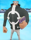 На первый взгляд кажется, что его глаза закрыты либо непрозрачными очками, либо зеркальными линзами. На самом деле это часть модификации «Пасифиста», в результате которой его глаза стали выглядеть так. На его шляпе есть пара медвежьих ушей. Ткань шляпы, как и ткань штанов, покрыта изображениями лап. На его куртке нарисован большой белый прицел, а также несколько отпечатков белых лап. Слева на горле у него находится татуировка «PX-0», которая появилась после того, как он стал киборгом и до битвы в Маринфорде.