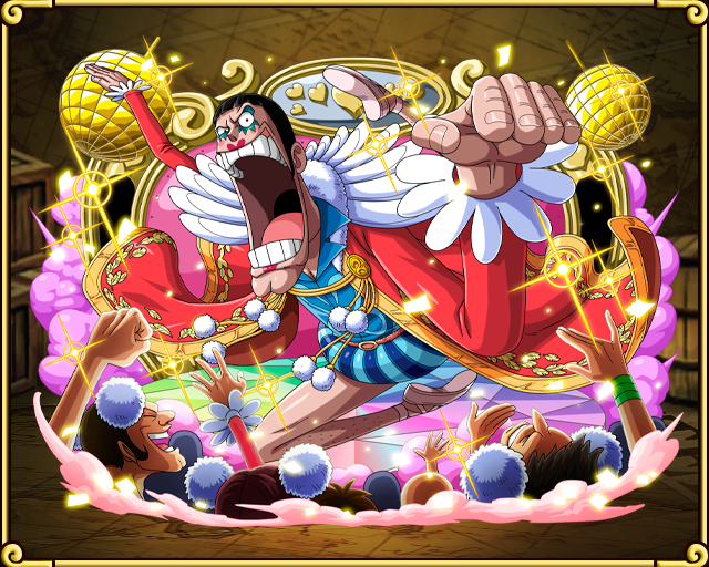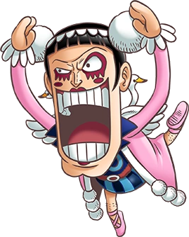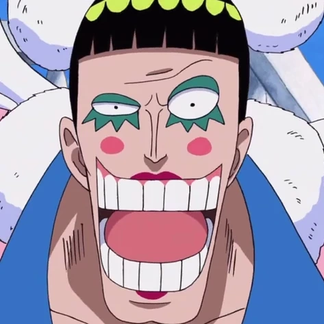 Бентам[1], псевдоним Мистер 2, Бон Курей. Бывший офицер Барок Воркс и Окама (Японский жаргонизм, обозначающий трансвестита).[8][4] Несмотря на то, что он, как офицер Барок Воркс,[9] был противником Луффи, они быстро стали друзьями, что привело Бентама к самопожертвованию в Алабасте[10] и позже в Импел Дауне.[11] В настоящее время он стал новой Королевой Ньюкама Лэнда.[3]