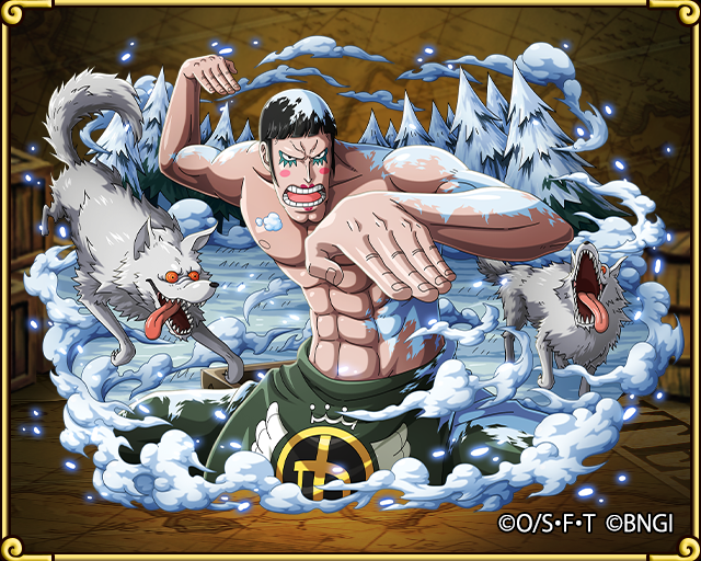 Бентам отражает их атаки, защищая себя и бессознательного Луффи. Однако волки нападают всей стаей, поэтому вымотанный Бентам вскоре начинает сдавать позиции. В тот момент, когда его готовится загрызть один из волков, неожиданно просыпается Луффи. Он кусает одно из животных и кричит, чтобы не трогали Бон-чана. В этот момент пробуждается Хаки, и враги падают поверженные. Этот рывок настолько изматывает друзей, что они остаются обессилено лежать посреди заснеженного леса. Появляется загадочная фигура.[38]