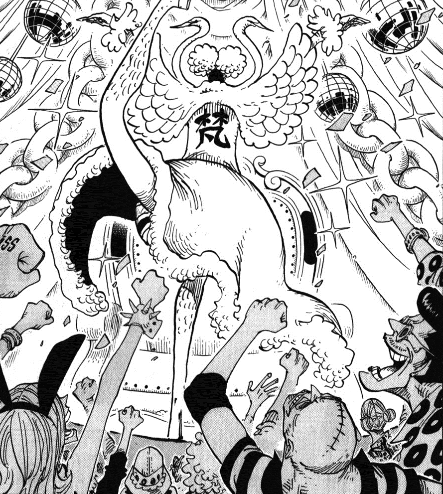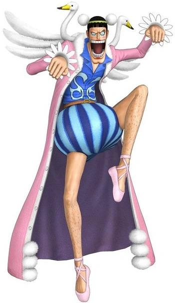 - Во время боя с Санджи, когда он впервые снимает лебедей с плеч, он отмечает, что левый — женского пола, а правый — мужского.