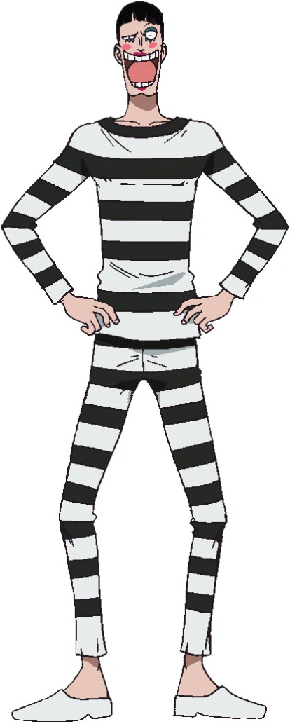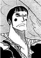 32 000 000.[7] Он вновь появляется в манге во время мини-сериала на обложках "Операция: встреча Барок Воркс", одетым в гораздо более изящных костюм, в котором он выглядит мужественнее, чем в своем обычном одеянии балетного кэмпо. Пиджак похож на тот, который носил Роб Луччи, под ним — рубашка, на ногах — черные брюки. Он не красит губы помадой, но его на его щеках остался румянец, что позволяет думать, что он не искусственный.