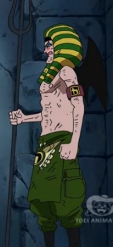 Позже он берет реванш у Хины, пытаясь спасти Микита от казни. После этого Марианна, Микита и Джем освобождают Мистера 4, Мисс Даблфингер, Дрофи и Лассу. Мистер 2 связывают с Мистером 3 и кидают в тюрьму к уже заключенным Мистеру 0 (Крокодайлу) и Мистеру 1 (Дазу Бонзу), из чего можно заключить, что Бона Курея вновь победила Хина. [30] Его позже переводят в тюрьму Импел Даун вместе с бывшими товарищами из Барок Воркс.[31]