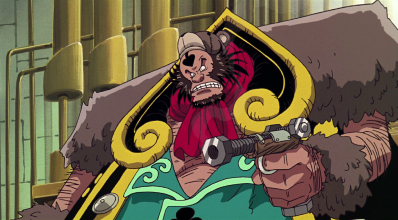Он и его команда захватили Заводной Остров, тем самым получив контроль над ключом острова, под угрозами заставив учёных строить для себя Царь-Пушку, которую он намеревался использовать, чтобы стать Королем Пиратов.