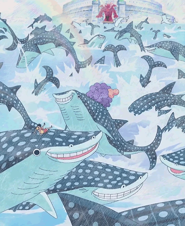 Китовые акулы — гигантские дружелюбные акулы, призванные Дзимбэем во время побега из Импел Дауна.[5]