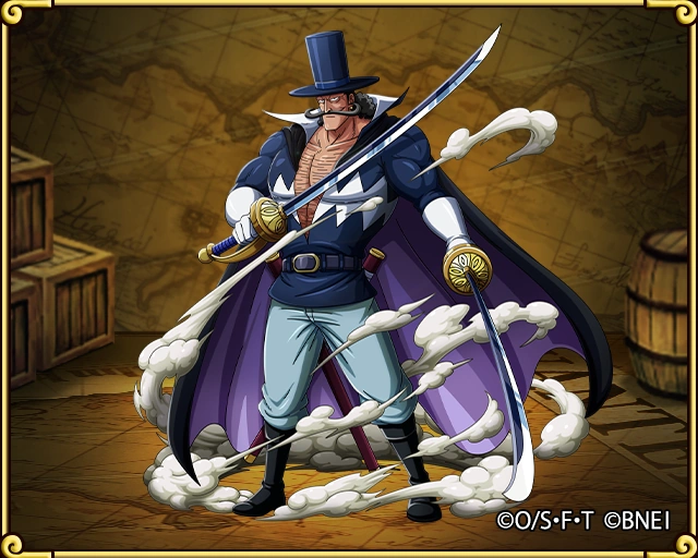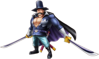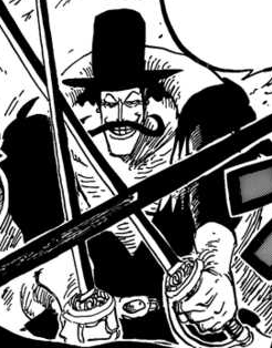 Он был официально представлен, когда Марко приказал ему заменить Луффи в поединке с Михоком. Он успешно блокировал меч Михока двумя саблями прежде чем вступить с ним в бой.