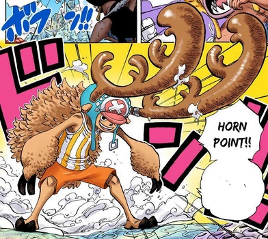 Тем временем один Рыбочеловек подкрался сзади к Нами, говоря о том, что, видимо, не все в команде Пиратов Соломенной Шляпы такие силачи. Однако когда он попытался атаковать Нами мечом, она просто увернулась от его атаки, а затем заявила, что с его стороны это ужасно грубо говорить такие вещи, а кроме того не стоит недооценивать науку о погоде, а затем развернулась, поставив Клима- Такта прямо перед нападавшим на неё рыбочеловеком и использовала gust sword, запуская в противника мощный воздушный поток, который благодаря своей силе сбросил рыбочеловека с ног, заставляя потерять сознание. Усопп в это время расстроился, что теперь он не внутри безопасного танка, однако отметил, что теперь он больше не тот, кем был раньше, после чего выстрелил в бегущих на него рыболюдей hissatsu: midorioshi takejavelin, протыкая нападавших на него бамбуковыми кольями, которые выросли из его снаряда. Жители острова поражённо отметили, что все Пираты Соломенной Шляпы сражаются так, словно сами очень хотят этого и получают удовольствие от боя и не могут сдержаться. А в это время Дарума быстро роет, прогрызая себе путь, под землёй туннели под всей площадью, чтобы Генерал Фрэнки из-за своей тяжести провалился в огромную яму и уже не смог встать. Вдруг Дарума начинает слышать звук того, как кто-то так же как и он роет под землёй. Этим кем-то оказывается Чоппер, который роет наперерез Даруме, а затем выкидывает его на поверхность. Дарума в гневе подлетает в воздух, вопрошая, кто это сделал, и перед ним появляется Чоппер в своей новой форме Horn Point, благодаря которой он теперь тоже может рыть под землёй своими новыми рогами, которые стали во много раз больше, становясь похожими на рога жука- оленя. Чоппер объяснил, что за два года он усилил и обновил все семь своих трансформаций, и теперь Рамбл Болл ему нужен только для одной из них, а в другие шесть он может превращаться в любой момент. Дару и Чоппер вступают в бой.