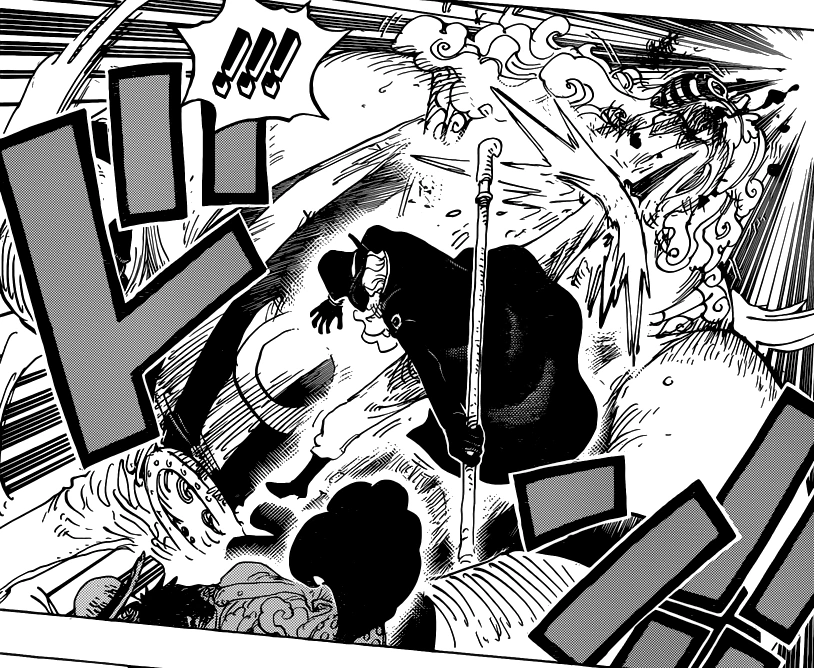 Глава 786 (стр. 8-9, 16-17), Бёрджесс пытается убить Луффи, но его останавливает Сабо.