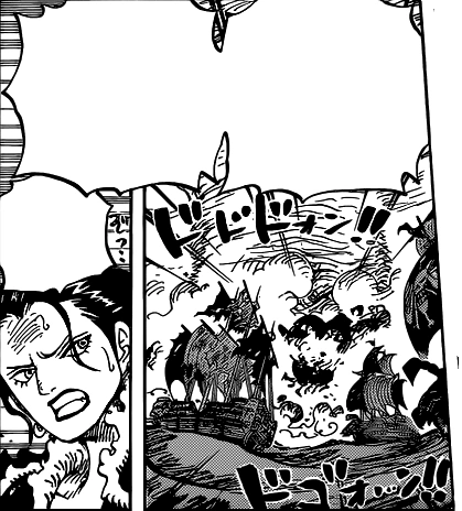 Джинрамми и ее накама преследовали Нами, Брука и Момоносукэ. После того как Санджи победил Шипсхэда, она приказала всем отступать и просто доложить, что Райдзо здесь нет.[1]