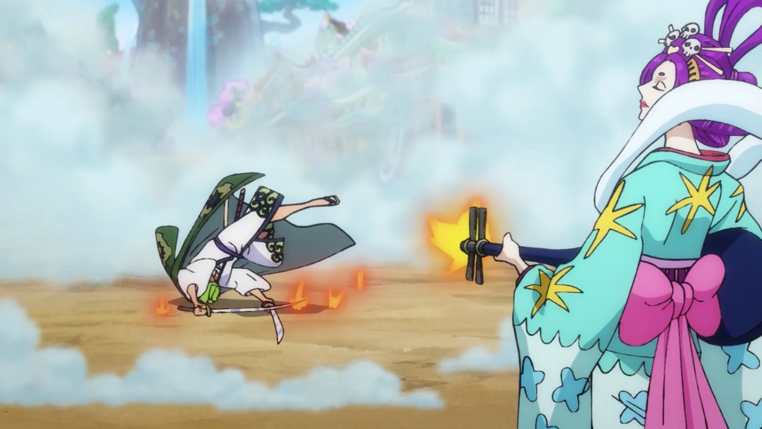 - Дзигоку Бэнтэн против Ророноа Зоро[7]