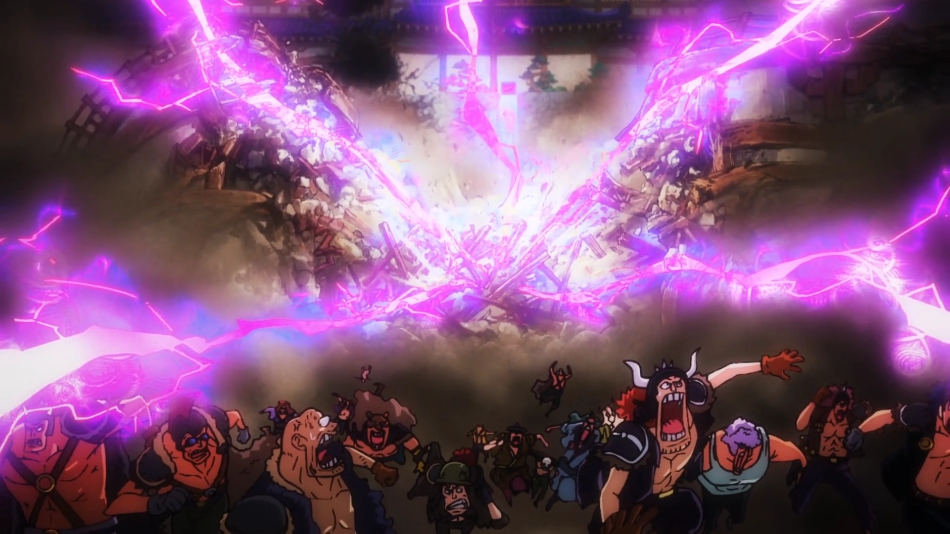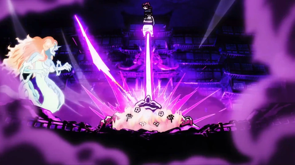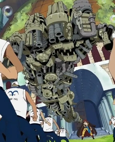 Глава 1009 (стр. 18) и Эпизод 1026, Кид отталкивает Большую Мамочку своей кибернетической рукой.