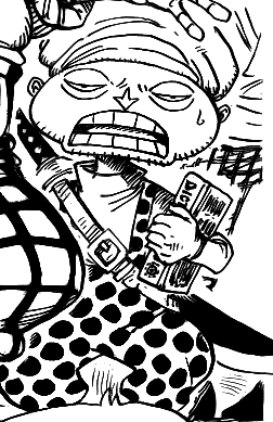Он впервые появляется вместе с Дадан и другими горными бандитами, когда Гарп пришел, чтобы оставить Луффи в их попечительстве.