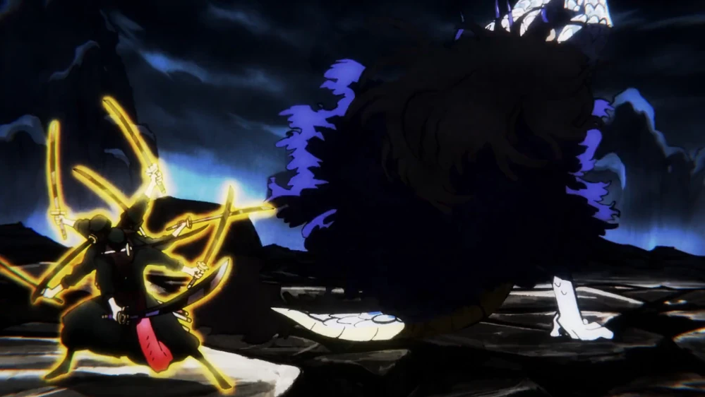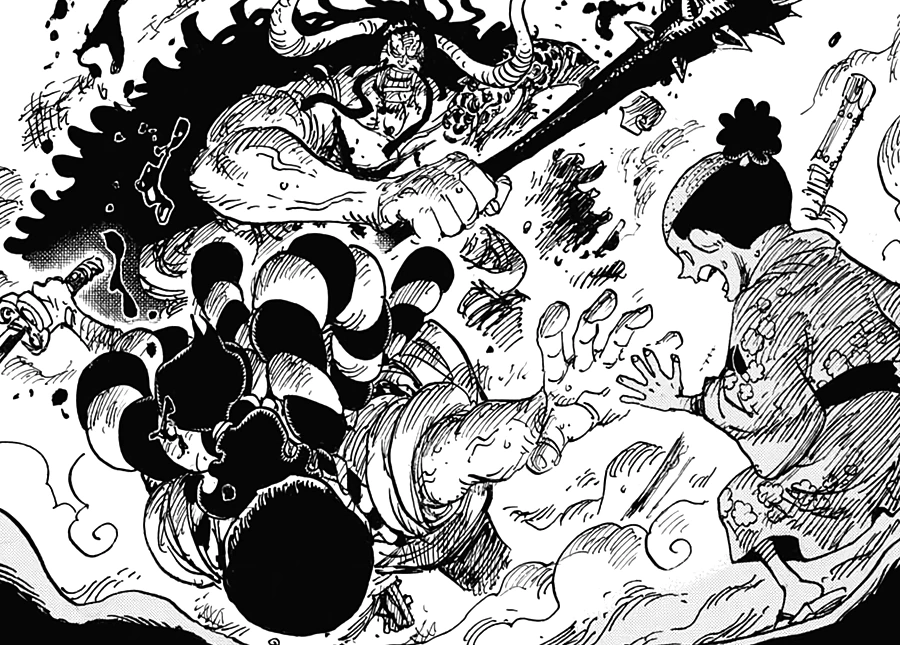 Глава 1010 (стр. 3-4, 7-17), Зоро наносит удар Кайдо, оставивший на нём шрам.