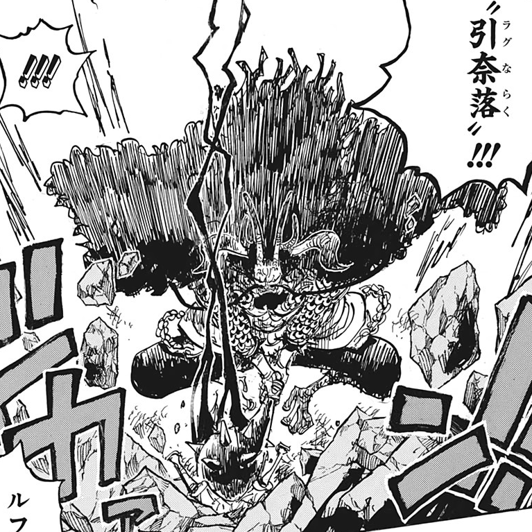 Глава 1009 (стр. 7-14), Кайдо сражается против Луффи в гибридной форме.