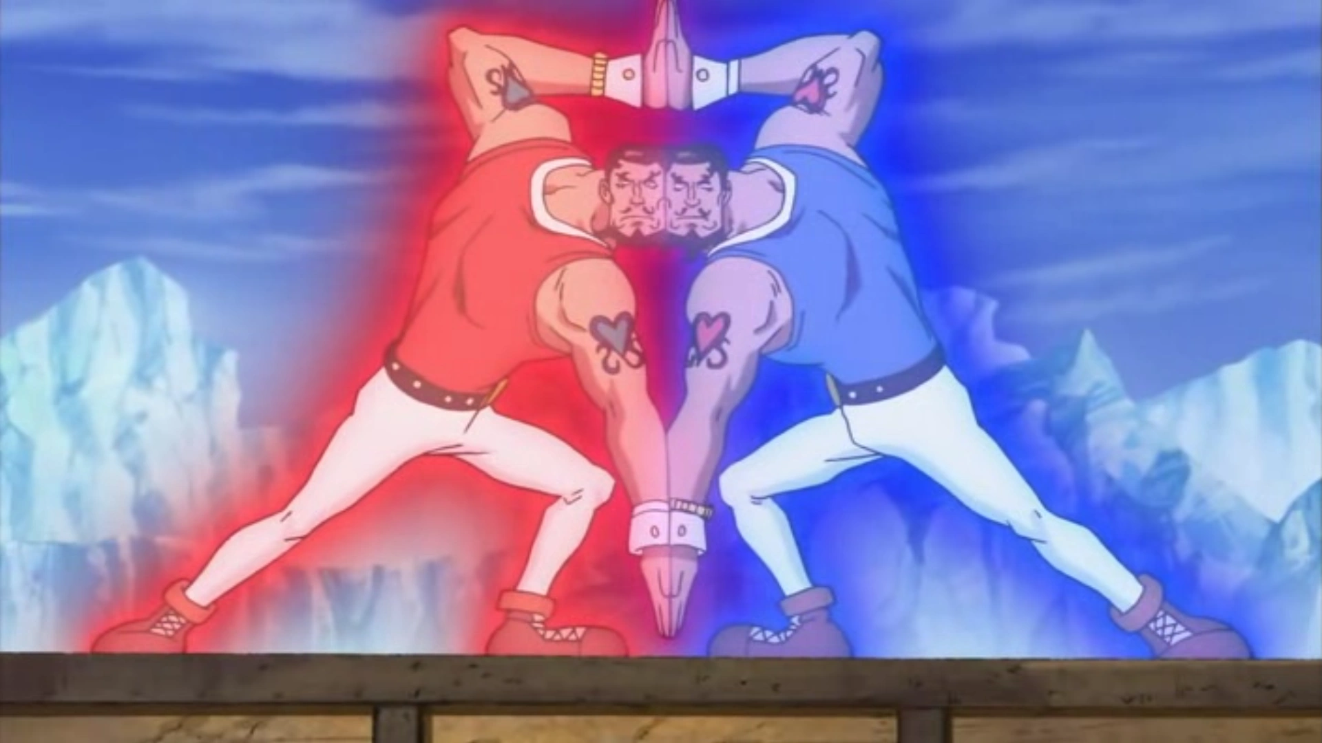 One Piece Аниме — Эпизод 331, Луффи думает, что Бриндо и Кампачино клоны, когда видит их.