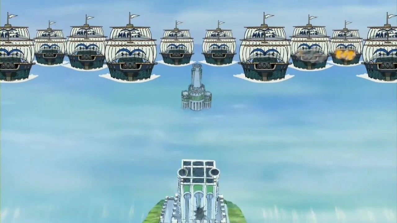 Корабль Пудинг Пудинг был стандартным кораблём Дозора. Поскольку Пудинг Пудинг и его команды была вовсе не сильно и состояла из обычных людей, они не могли ничего противопоставить Пиратам Арлонга. На его парусе также виден номер 77. Корабль был потоплен Пиратами Арлонга близ Арлонг Парка. Впервые он был показан во главе 76 и Эпизоде 34.