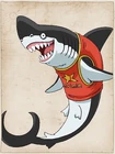 Мегало — черная акула с белым животом. Он выглядит как обычная акула, разница в том, что на нём надета футболка.