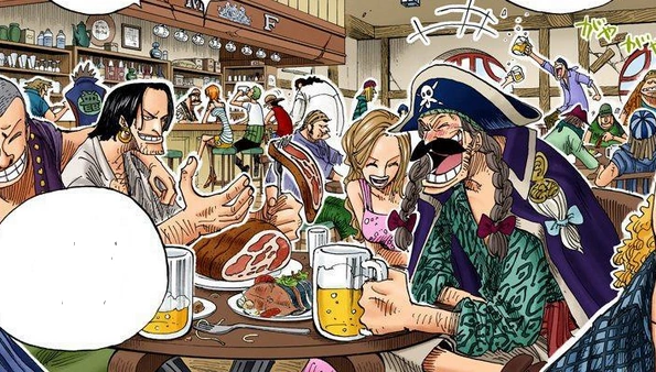 55,000,000), особо уважают и даже боятся. Сам город был построен, достраивается и ремонтируется на деньги, которыми пираты в этом городе так любят сорить без дела и по делу. Именно поэтому, несмотря на то, что в городе постоянно проходят бои, пираты редко нападают на мирных жителей. ведь они- их доход. Бармен сказал Нами, Луффи и Зоро, что если в этот город приедет нормальный человек, то он возненавидит то время за очень короткий срок. Благо, что в этом городе нет нормальных.