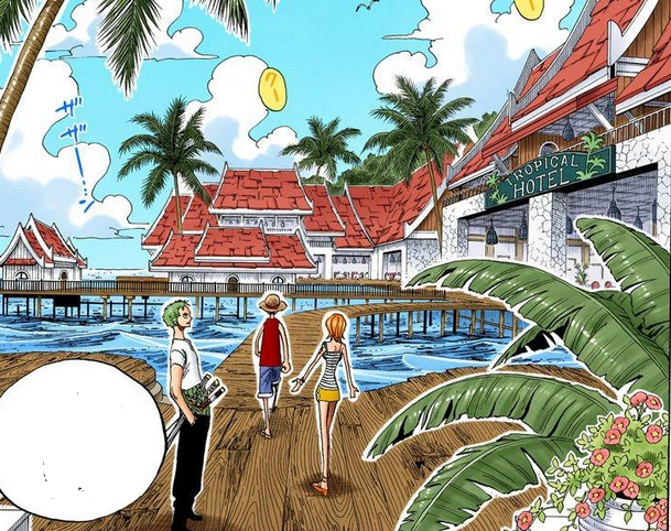 Отель Тропикана (トロピカルホテル Торопикару Хотэру?) — это отель который расположен в городе. Отель- то единственное место в городе похожее на оазис чистоты и приятного запаха. Несмотря на разрушенную обстановку во всём остальном городе, здесь здание цело и даже более того, кажется красивым. Здание отеля как бы вист над водой, что вызвало восхищение у Нами, Зоро и Луффи.