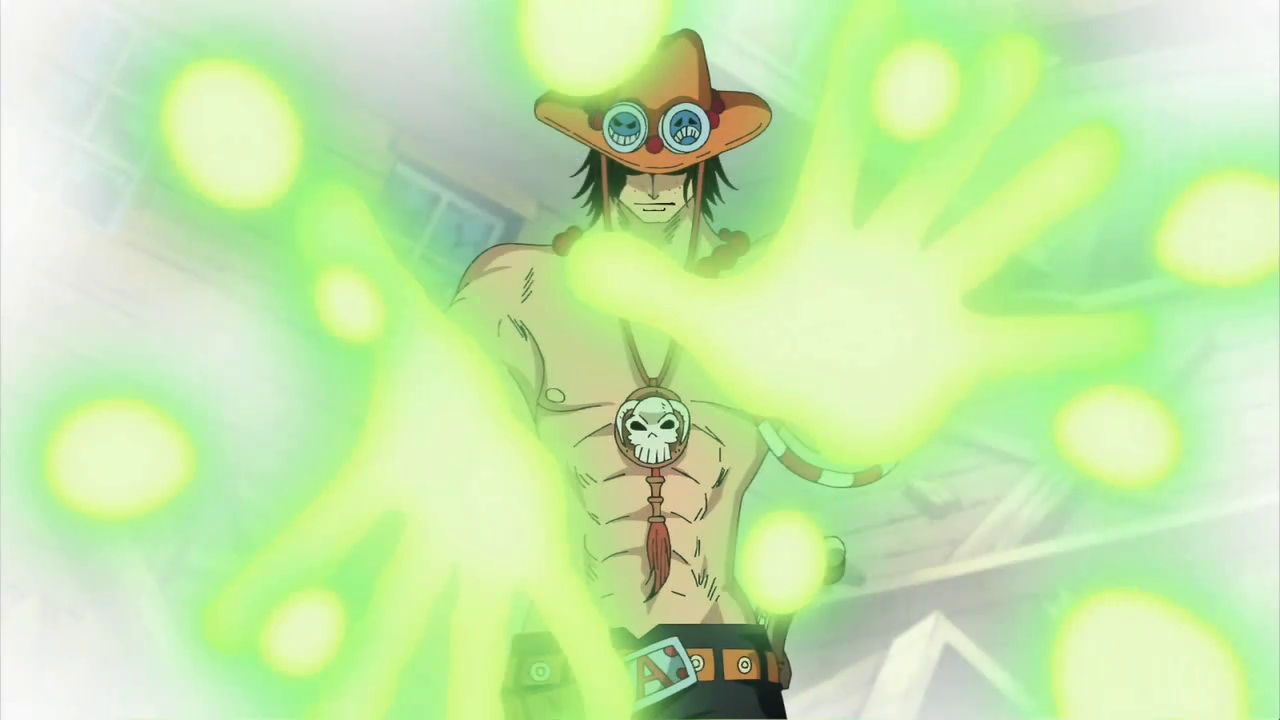 Глава 158 (стр. 18-19) и Эпизод 94, Эйс впервые демонстрирует "Kagero" перед разъяснение силы своего Дьявольского плода.