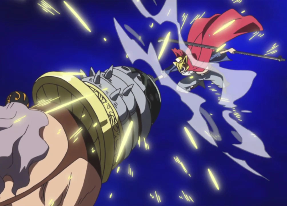 Глава 786 (стр. 17) и Эпизод 729, Сабо спасает Луффи от Бёрджесса.