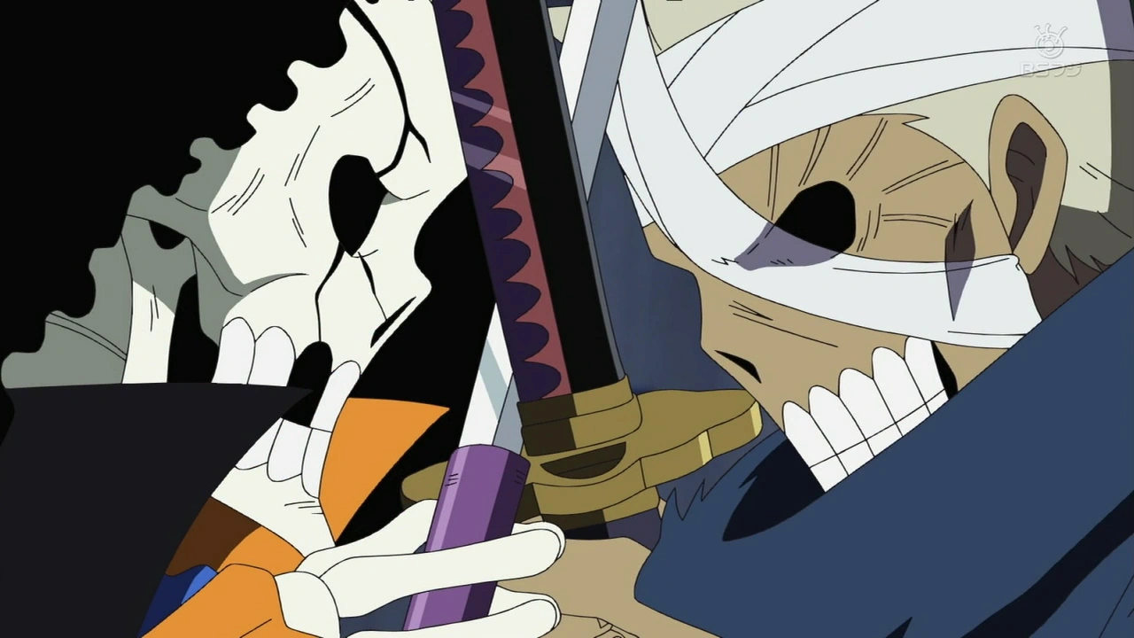 Глава 462 и Эпизод 357, Рюма побеждает Брука и собирается отрезать ему афро, когда его останавливает Зоро.